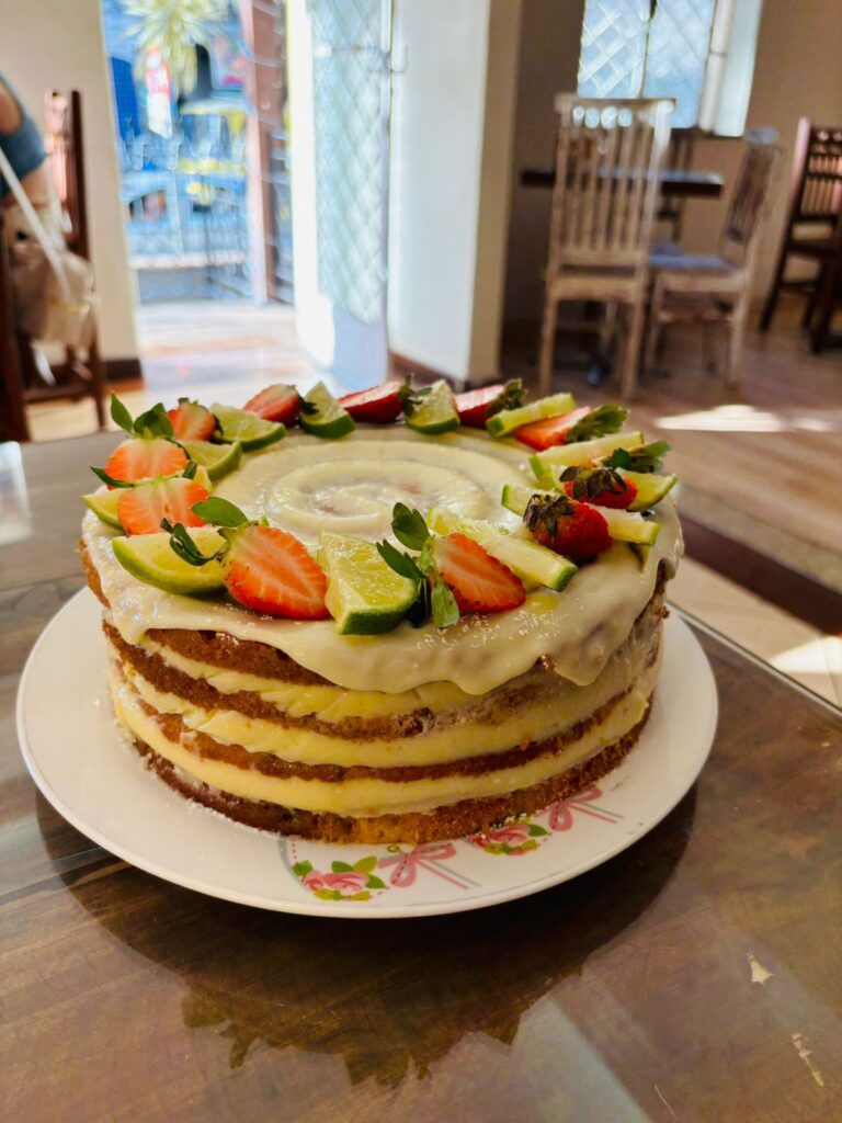 Para quem prefere opções salgadas, a confeitaria oferece quiches de alho-poró, camarão, queijo, queijo com bacon e frango, também disponíveis em três tamanhos. Há ainda tortas salgadas nas versões pequena, média e grande, com valores que variam entre R$90,00 e R$250,00. Completando o menu, os bolos caseiros trazem opções como bolo de aipim, broa cremosa, bolo de cenoura e bolo de cenoura com chocolate, com preços entre R$80,00 e R$110,00.