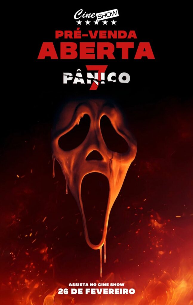 Os fãs de terror já podem se preparar: o Cine Show iniciou a venda antecipada de ingressos para Pânico 7, que estreia oficialmente nos cinemas brasileiros no dia 26 de fevereiro. Em Volta Redonda, o longa estará em cartaz nas salas do Cine Show, e a expectativa é de casa cheia para acompanhar o retorno do icônico assassino Ghostface às telonas.
